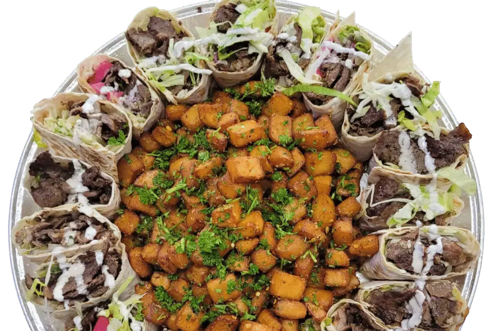 Finely carved beef shawarma grilled to perfection on the rotisserie.