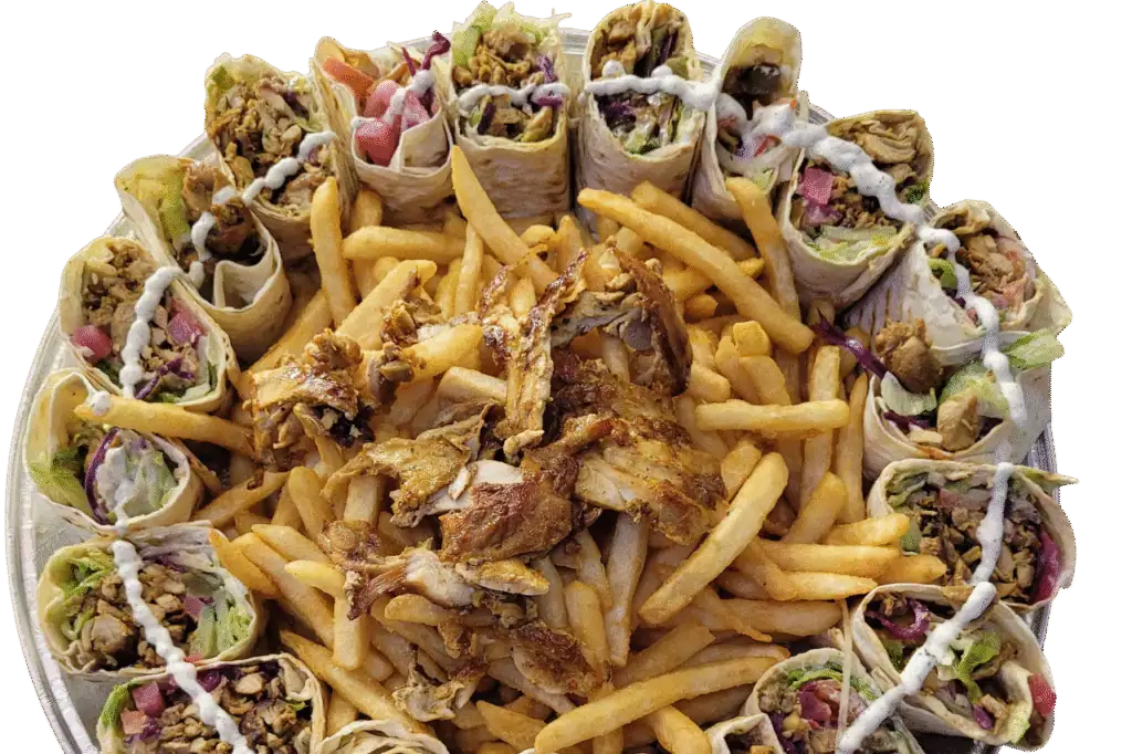 Finely carved chicken shawarma grilled to perfection on the rotisserie.