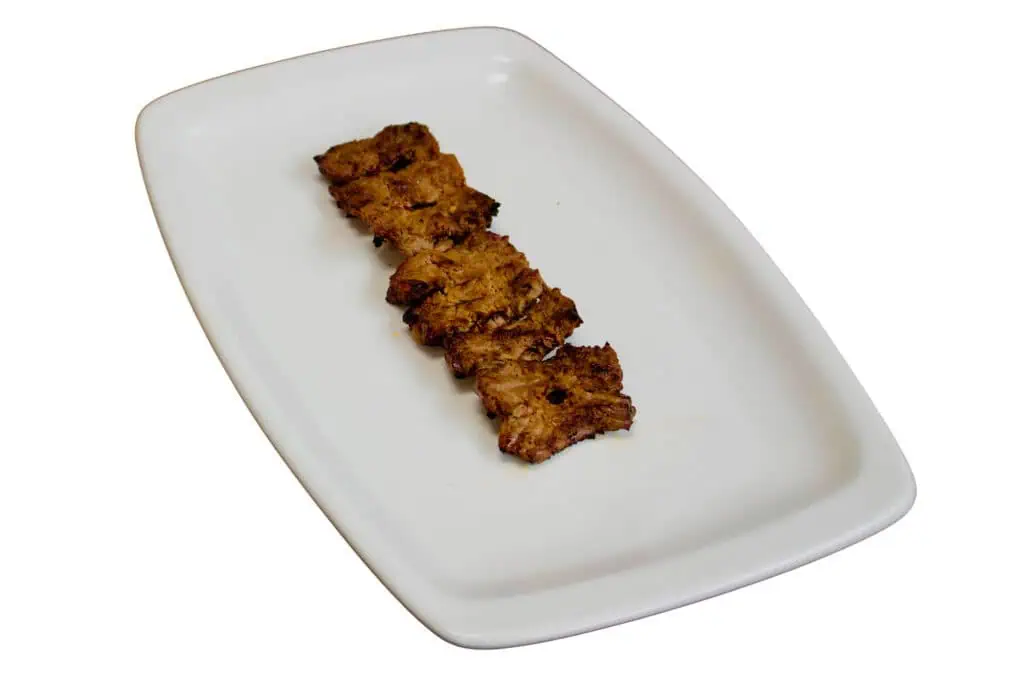 One skewer of thinly-cut seasoned beef